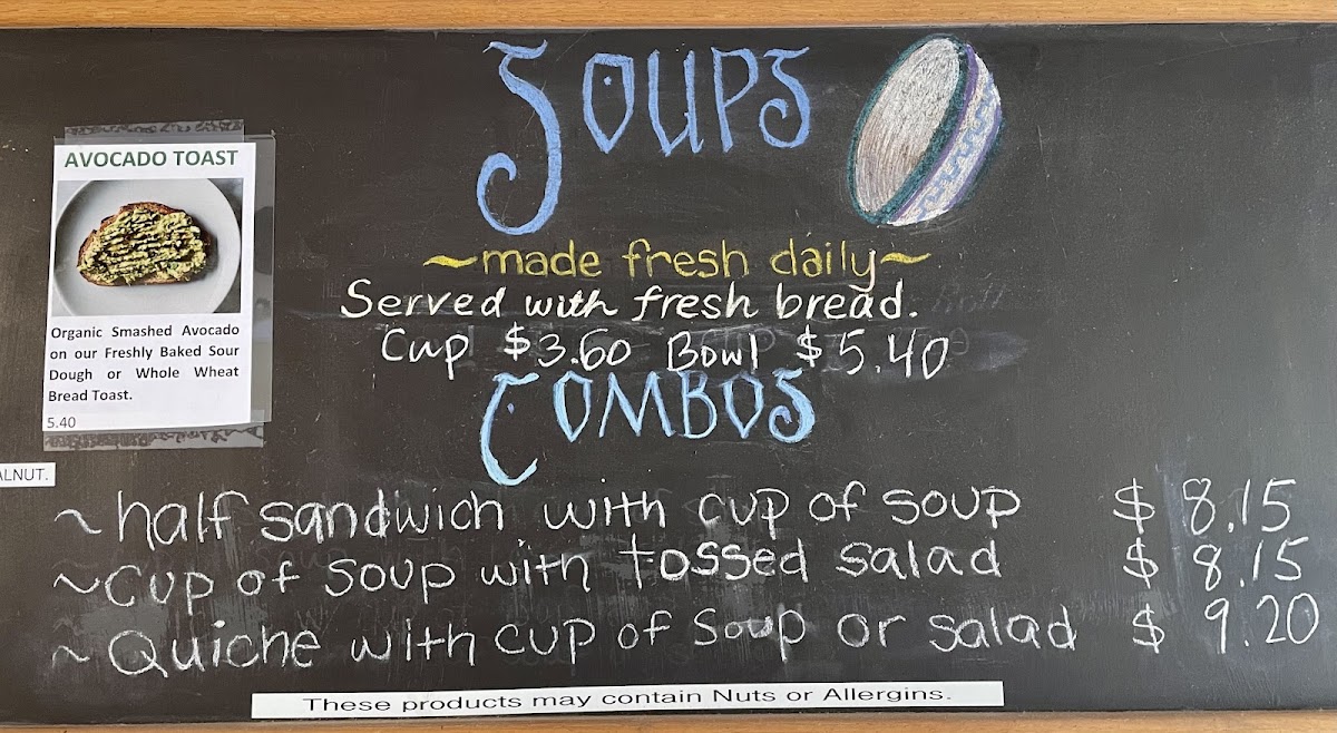 The menu features easygoing favorites like the breakfast sandwich, warm savory croissants, and freshly baked scones that pair naturally with a cozy cup of coffee. If you’re stopping by midday, the hearty cup of beef barley soup or a slice of classic blueberry pie offer just the right touch of homey satisfaction. Light, fresh choices such as avocado toast and crisp salads also make for balanced, approachable meal options throughout the day.